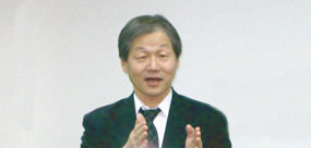 後半の1日目は演習です。まず最初に、奥田先生がクライアント役を相手に、実際にコーチングの見本をみせてくださいました。