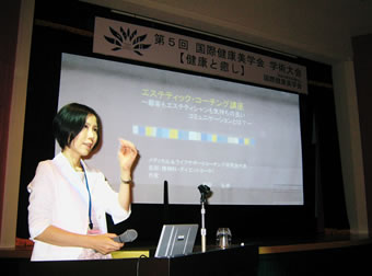 ![]() ![]() 『健康と癒し』をテーマに掲げた今大会は、村山理事長の開会挨拶によってスタート。 今後エステティックに求められる「健康と癒し」について考察する機会となりました。会場は盛況で、海外や全国から集まった参加者約250名は、真剣なまなざしで聴講していらっしゃいました。 同日の主なプログラムは以下の通りです。 Special Lecture ![]() 日本アロマコーディネーター協会常任理事 特別講義 『 和製アロマテラピー ~日本人の日本人による日本人のためのアロマテラピー~ 』