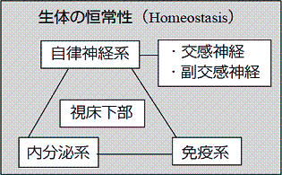 生体の恒常性(Homeostasis)は自律神経系・内分泌系・免疫系などのトライアングルによって維持されています。