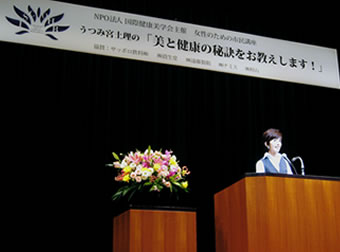 平成20年9月25日、新宿区立四谷区民ホールで、女性のための市民講座を開催しました。テレビ出演、司会、講演、健康本の執筆などで活躍中のうつみ宮土理さんを講師に招き、「うつみ宮土理の美と健康の秘訣を教えます!」というテーマでご講演いただきました。