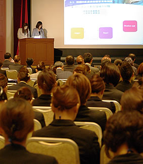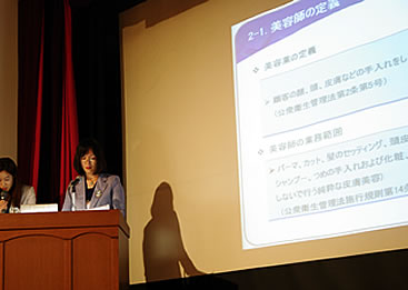 ![]() 講演 『 健康美のための姿勢と動き 』 ![]() 東京国際大学人間社会学部人間スポーツ学科准教授 医学博士 早川洋子先生による「健康美のための姿勢と動き」の講演を伺い、良い姿勢は美しさや健康にもつながっていて、正しい姿勢こそが健康美の基本であることを実感しました。 正しい姿勢、良い姿勢には、 1.外見の印象を左右する→変えやすい 2.美しいボディーラインづくり 3.けがを予防したり、疲労しにくいなど、様々な動作に影響を与える 4.腰痛を予防する 5.内臓への負担が少ない 6.若さやエネルギーなど、年齢を反映する このような良い効果があるそうです。 そして、会って2~5秒で決まると言われる第一印象をアップする効果もある美しい姿勢は、特に人前に立つお仕事をされている方であれば、とても大事なポイントですね。 ところが、その良い姿勢をキープすることは難しいことでもあります。 身体の片側だけ使う姿勢をとるくせによって、身体が歪んでいることも多いようです。 例えば、日常の動作でいうと… ・足を組む時、上にする足が決まっている ・床に横座りをするとき、左右どちらかに足を出すかが決まっている ・かばんや買物袋を持つ手が決まっている ・横を向いて寝る時、右向きか左向きかが決まっている などです。 さらに、現代は、生活の便利さゆえに、骨や筋肉が衰え、重力に対して無理のない直立姿勢(良い姿勢)がとれない人が増えています。 それにより、ダメージを受けやすいのが「腰」です。 今や、日本人の健康寿命を阻害する要因の2番目が「腰痛」だそうです。 脊柱は、背部の壁と腹圧に支えられて保護されており、それは自然のコルセットの効果があるそうです。 つまり、日頃から意識しておなかに力を入れておくことが、たるみのない美しい姿勢を保つことにつながるということです。 ![]() 講演の中で、実際にO脚の矯正法を教えてくださいました。 両手を前に伸ばし、両足を揃えてまっすぐに立ちます。適当に折りたたんだバスタオルを両ひざの間に挟みます。そして、背筋をまっすぐに保ちながら、90度の角度まで、ゆっくりとスクワットを行います。8回程度でOKです。 確かにモデルさんの足の形に変化が見え、参加者の皆様からは声が上がりました。先生によると、一過性のものではありますが、根気よく2種間ほど続けていると自分のものになるそうです。 意識一つで、常に美しい自分でいられるなんて素敵なことですね。 ぜひ、実践して美しい姿勢を手に入れたいものです。 研究発表 『 韓国の皮膚美容師国家資格制度に関する研究 』 ![]() 仁川才能大学校美容芸術科教授 理学博士 郭眞瓊先生には、韓国で国家資格として認められているエステティックの資格の実態について詳しく教えていただきました。 韓国では、2008年1月1日より国家技術資格法による美容師資格が、一般美容師と皮膚美容師(エステティシャン)に区分されました。それに伴い、同年10月5日に実施された第1回目の皮膚美容師国家試験は、スキン・エステ市場の拡大を見越してか、予想を大きく上回り15万人が受験したそうです。皮膚美容師の需要の増加も相まって、その後も資格取得者の数は安定して増加しています。2013年の国家技術資格統計年報によると、2012年に韓国の35歳~44歳の女性が取得した上位10種類の資格の中で、皮膚美容師が23.9%、一般美容師が22.4%と、共に高い取得率を示しており、人気のある資格であることがわかります。 ![]() そして、ドイツなどの先進国の資格制度を参考にして、量ではなく質の高い専門性を持ち現場に適した皮膚美容師の養成を通して、皮膚美容師の社会的地位の向上を願っていると締めくくられました。 講演 『 望ましいセラピストのあり方とテクニック 』 ![]() 昭和大学医学部薬理学兼任講師 医学博士 株式会社村山代表取締役 少子化が社会問題となっている今日ですが、同時に平均寿命の延びによる高齢者の健康維持、医療費の増大などの問題も深刻さを増しています。 我が国にとって疾病の予防は重要な課題であり、エステティックに通うことで健康的に痩せることができれば、エステティシャンも生活習慣病の予防や健康維持に貢献できるはずです。 エステティシャンは、国家資格がなくても従事できる仕事です。そのために、これまでは仕事に必要なスキルや標準的なレベルというものも、あまり明確ではありませんでした。 村山舞先生の講演は、エステティシャンの仕事をもう少し広くとらえ、ヨーロッパでいうところのセラピストとして位置づけて、これからのあり方を問いかけるものです。 ![]() 講演では、初めてサロンを訪れるお客さまへの気持ちのよい接客や、痩身プログラムを継続するためのやる気を維持するために、コーチングをどう活かしていくかについて具体的な解説がありました。 エステティックを単なる美容の一つの仕事ではなく、健康的に美しくなることを支援できるやりがいのある職業、誇りのもてる仕事にしていきた