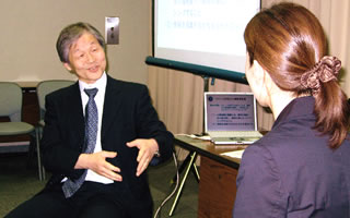 不思議なことに、エステティシャンを演じる梅本先生の対応によって、次第にお客としての怒りがおさまってきて、気持ちが落ち着いてくるという体験をされたようです。デモンストレーションを見ていた他の方々からも、その効果が十分感じられたという感想をいただきました。